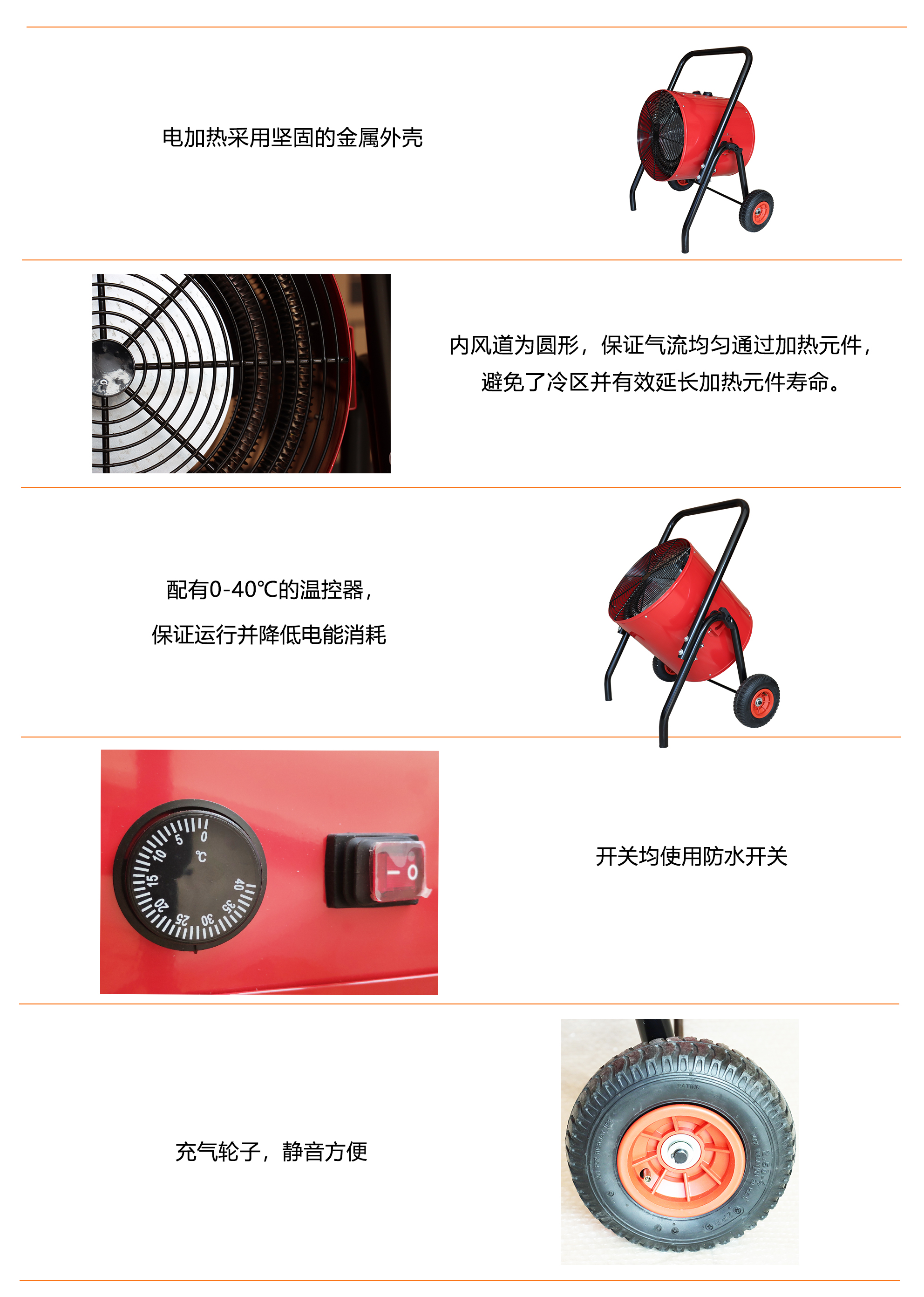 5.内风道为圆形,所有的气流均匀通过加热原件