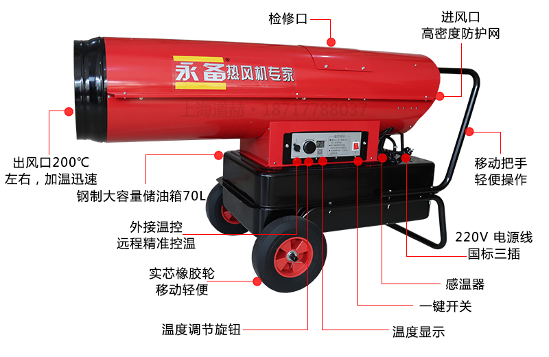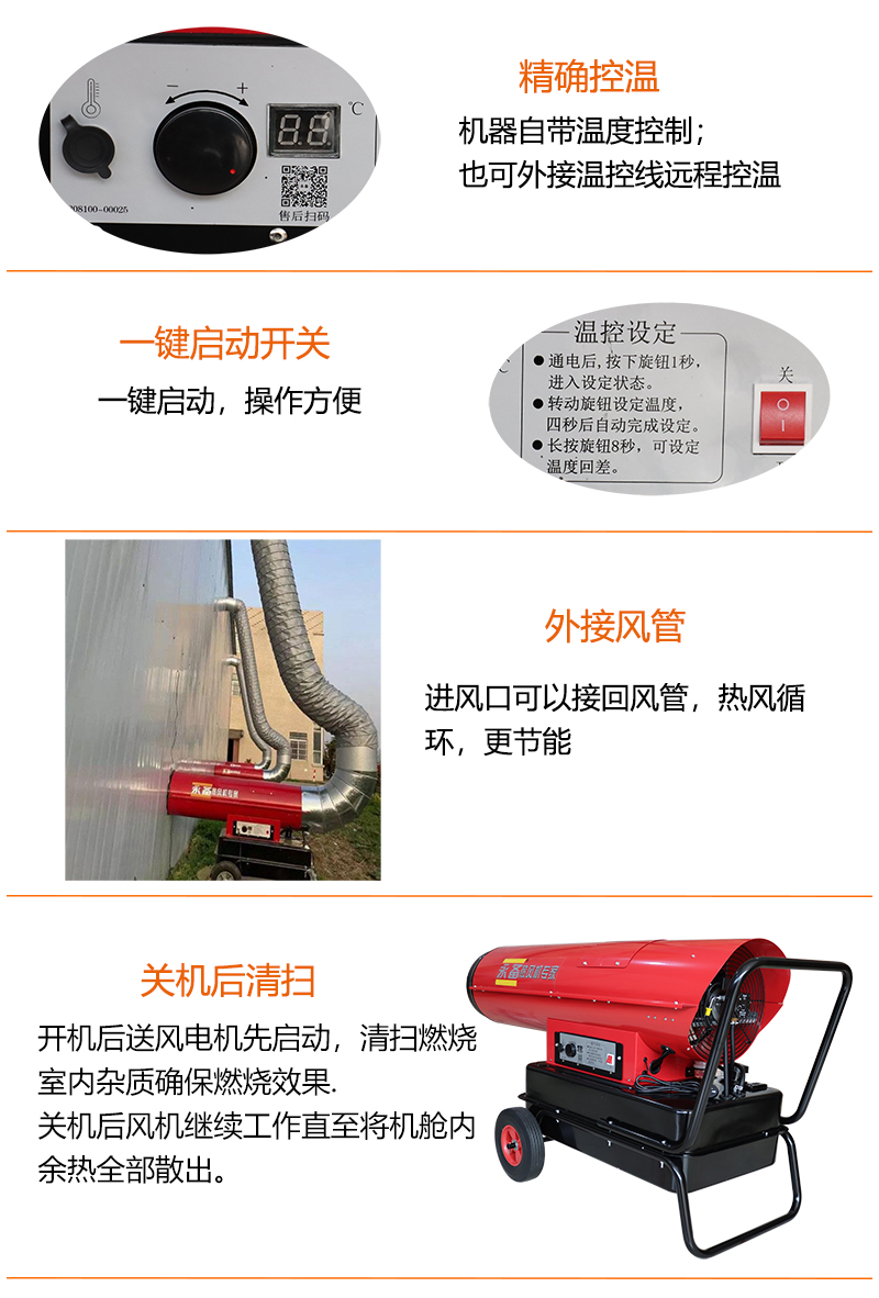 1.ST80 ST100采用柴油或煤油为燃料,机器后部的强力风机将燃烧产生的热量吹出