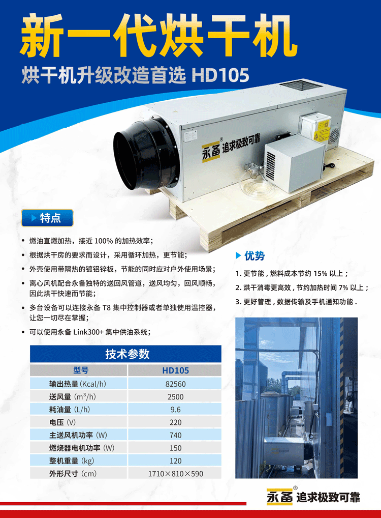 4.离心风机配合永备独特的送回风管道,送风均匀,回风顺畅,因此烘干快速而节能;